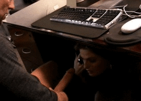 Скромная секретарша сосет член под столом